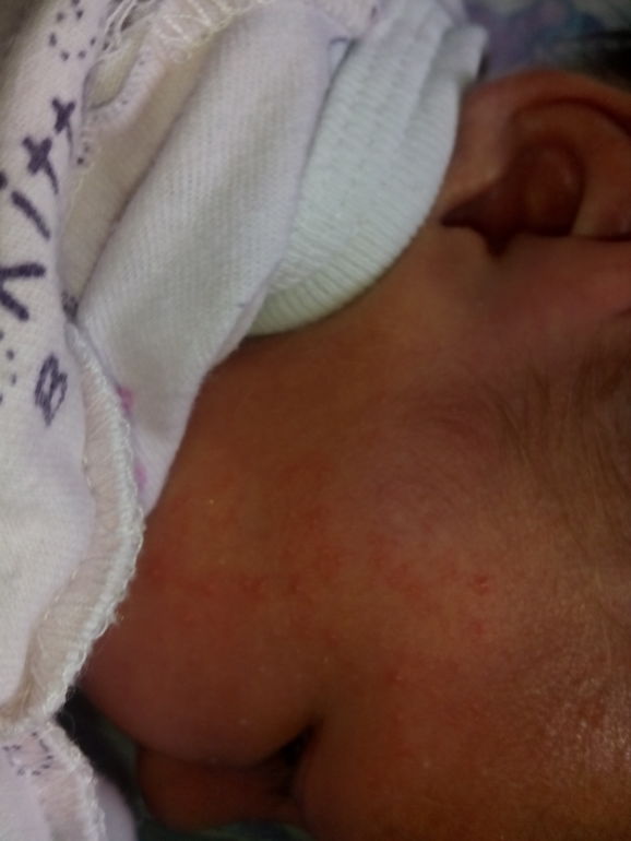 Девочки, малышку высыпало на лице с одной стороны! Я сначала думала, что на с'еденные мною бананы, но сыпь только в 1 месте...Потом выявила закономерность...Обсыпанная сторона- любимая сторона для сна. У нам СС, ночью начала кряхтеть, я ее переворачиваю, а эта сторона вся мокрая- так и закрались мысли о потничке. Девочки, как лечить? Сыпи 2-3 дня
