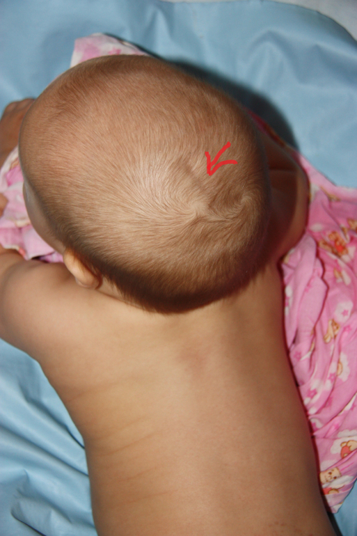 Если честно, начитавшись ужасов, готова прям щас на мрт бежать с ним((((((((( эта бороздка как бы не совсем по центру головы, а смещена влево...