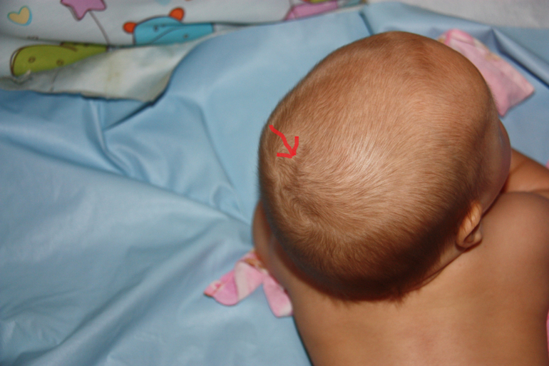 На ощупь мягкая ткань (само углубление) в размерах не увеличивается, но и не особо уменьшается. Родничок у реб маленький. В остальном, не считая некоторых не сильно значительных проблем со стороны невралгии (легкий триммер подбородка, вздрагивает при резком шуме во время бодрствования и когда засыпает, на цыпочки встает, ручки в кулачках бывают, но не сильно - невролог сказала, что я к нему придираюсь, и что реб здоров) в принципе проблем нет - малыш активный, кушает, набирает хорошо, развивается по возрасту. Сейчас больше капризный, но м.б. зубы лезут... Голова сама нормальной формы (как по мне)