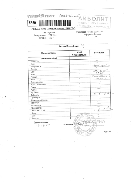 В анализах мочи все хорошо, изменений нет. В анализе крови отмечается моноцитоз , что является признаком вирусной инфекции. Антибиотик, судя по анализам, не требуется.