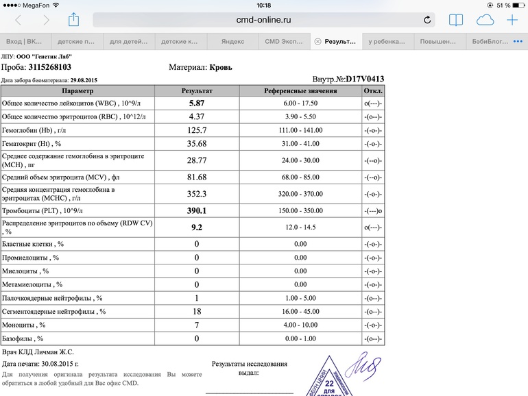 Ребенку почти 5 мес, пришел анализ крови. ОЧЕНЬ напрягают большие отклонения в тромбоцитах (отклонения и раньше были) и в базофилах(отклонений не было). Недавно ребенок чуть кашлял. Врачу, конечно, покажу анализ, но это будет не раньше пн или вт. А переживаю сильно