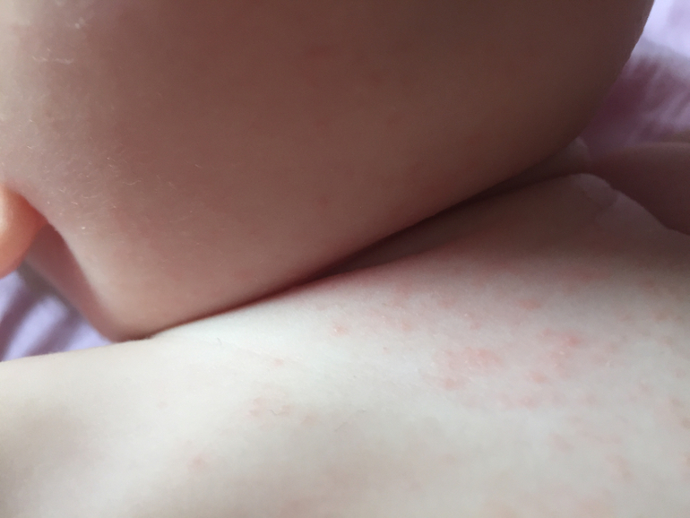 Высыпания на кожеребенку полгода, начали вводить прикорм с 5,5 месяцев, все хорошо было. Последние 4 дня вводим гречневую кашку. Утром у ребёнка сыпь по всему телу абсолютно. Вечером накануне помазала всю персиковым маслом, оно у меня пару месяцев вскрытое стояло. Что это может быть?