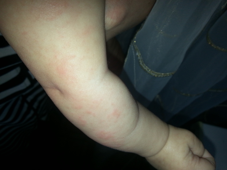 Тогда еще момент - вот только что переодевала дочь после сна - на ручке пятен нет. Аллергия может проявляться/затухать в течение суток?
