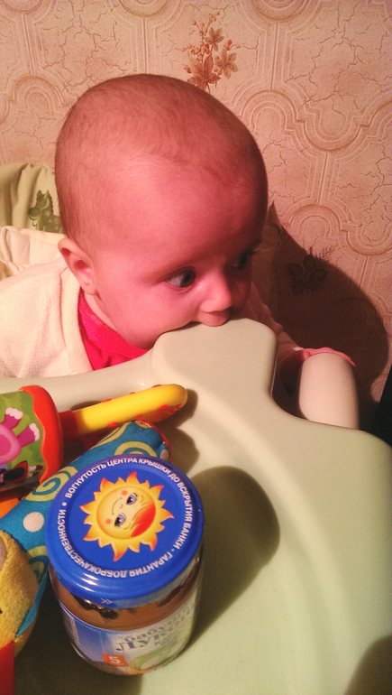 Весим за 9.5 кг,рост за 67см.(в пол-нике не были из-за эпидемии).Кушает титю и пюре из баночек.Зубов пока нет,слюнек полный рот,воротники постоянно мокрые.