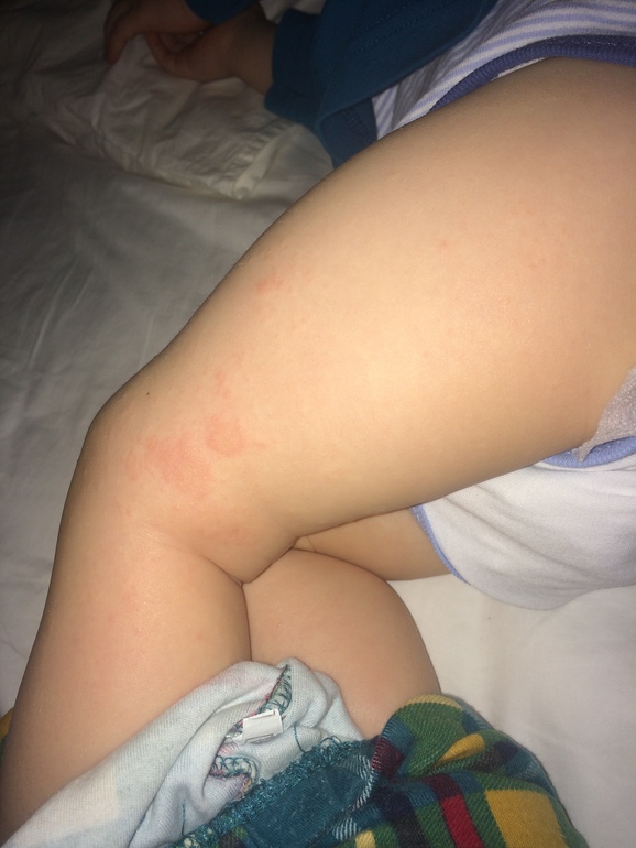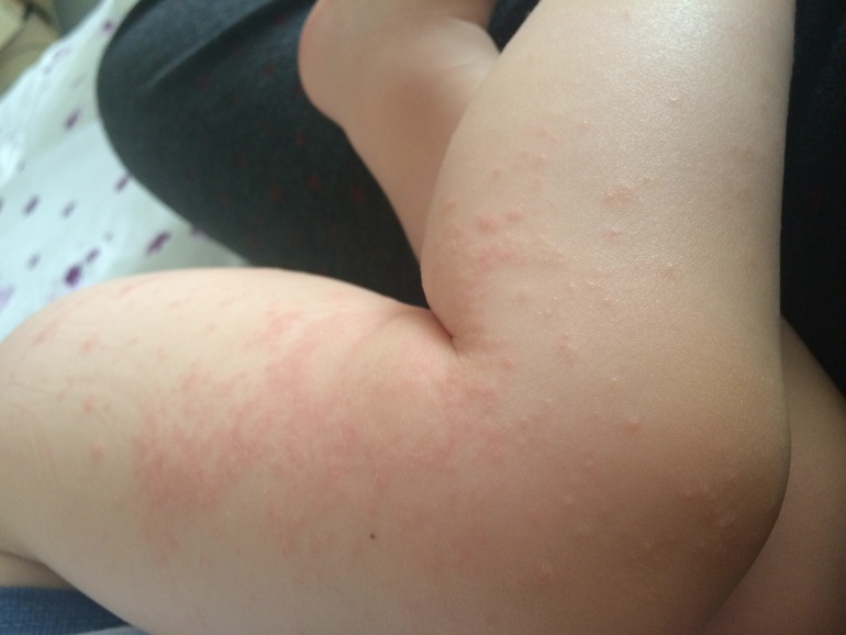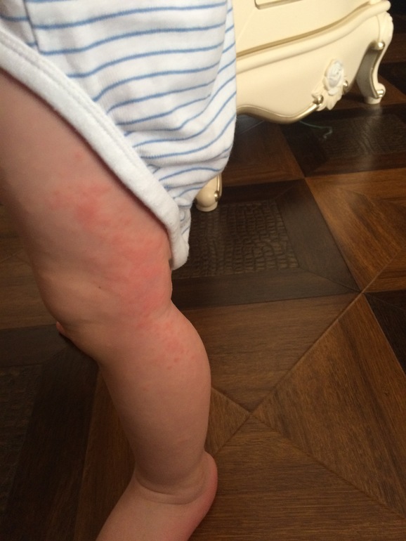 С каждым днём становилось все больше и больше . Я по рекомендации педиатра давала капли зиртек и мазала драполеном. Но становилось все хуже . В итогу всю ножку обсыпало