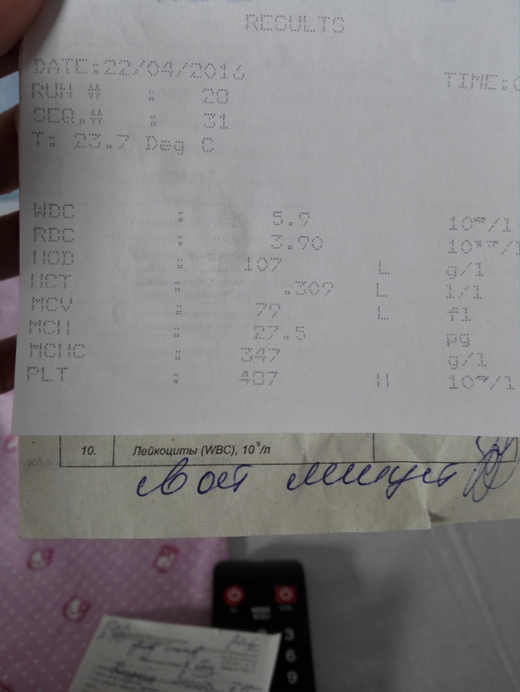 Смущает показатель PLT (тромбоциты) он повышен при норме 320!!!