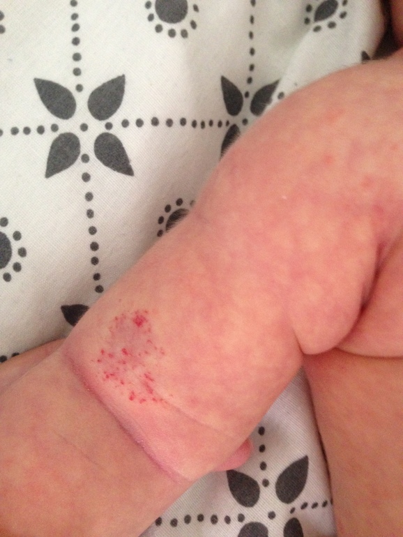 Похожа на гемангиому,у меня у третьей дочки тоже на руке появилась в месяц где-то до 6 мес. росла,у меня в дневнике есть пост посмотрите.