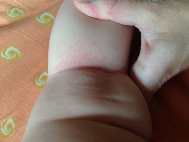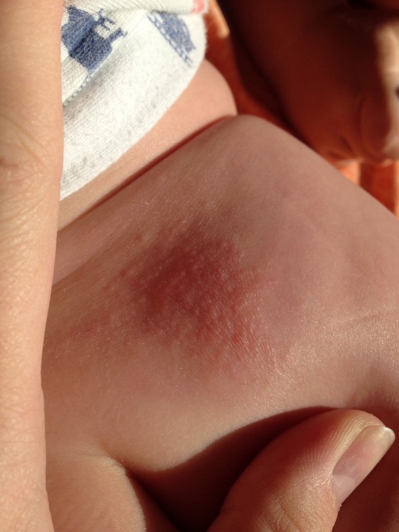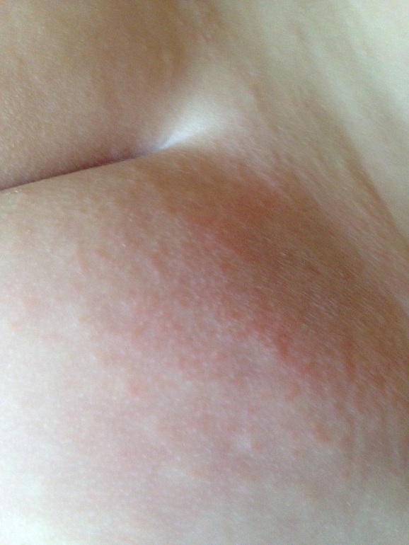 Высыпания на кожеИ вечный вопрос: Потница или аллергия?! Девчонки, помогите! Это пятно появилось после целого дня в машине, начало мая, жара.