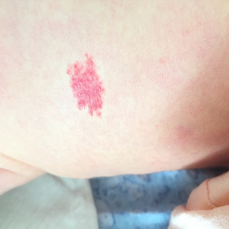 2,5 недели назад родила вторую дочку. Обнаружила на животике вот такое пятнышко. Она с ним родилась.
