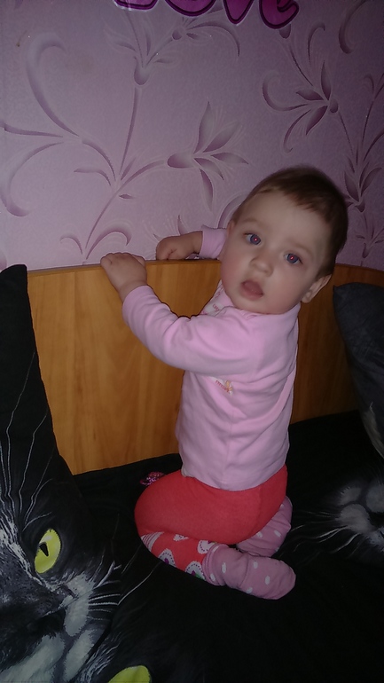 Нашей Виктории 8 месяцев и 8 дней. Весит дочка 10 кг и 100 гр, а рост у нее 75 см (высокая наверно будет). Из умелок (хотелось бы побольше, но всему свое время): активно ползаем, да так, что не догонишь. Сидеть еще не умеет, зато встает у любой опоры. В качестве опоры может служить и мама, и папа, и диван, и кошка, и кошачий домик, и стульчик для кормления. Делает она это так смешно, я в такой момент называю ее "моя желешка", потому что попа у нее трясется как желе. Пытается передвигаться вдоль дивана. Что же еще??? Ах, да!!! Лопочет активно, правда слогами только: па, ма, да, яяяя. Если спросить где мама, папа или бабушка, то всегда поворачивается в сторону, где находится человек. Если спросить "посмотри, кто там идет" сразу смотрит на входную дверь. Кушаем прикорм. Цветную капусту, брокколи, кабачок, картофельное пюре, из мяса индейку, телятину, завтра будем пробовать говядину, так же едим яблочное пюре, каши гречневую и овсяную, агушу кисломолочную. Зубов вот пока нет, и даже не дает в рот залезть посмотреть. Но в последние 4 дня ночью спит ужасно, просыпается каждые полчаса. А сегодня на ночь, точнее вчера, по совету одной девочки с ББ, дала Нурофен, и она хотя бы до 4 утра хорошо спала. Так много хочется рассказать про дочку, но боюсь, что что - то забыла. Если кому - то будет интересно что - то спросить - с радостью отвечу. Ну и немного из последних фото.