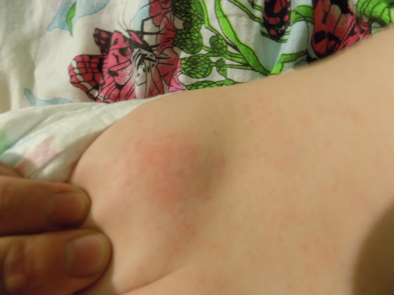 Высыпания на кожеПоявилось в течение двух дней, россыпь красных мелких прыщиков. Потница (как избавляться) или аллергия? Во многих местах по телу (на плечах сзади, пятно на попе, на руке, ноге, на пояснице) Фото не очень, раз 30 фоткала, свет вечерний.