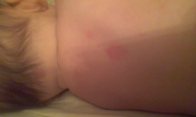 У нас были похожие пятна, когда мы попробовали смесь. На утро пошли к педиатру на плановый прием (так совпало). Она сказала, что это аллергия и скорее всего на смесь. Убрали смесь, пятна прошли