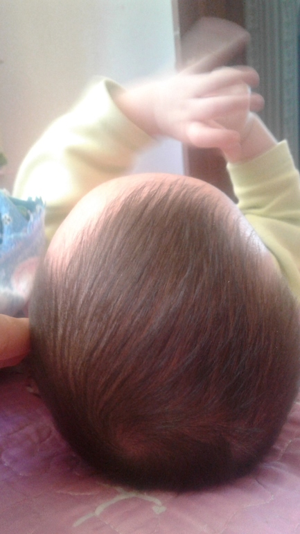 У нас голова " поехала" как раз к четвертому месяцу. Выписали ортопедическую подушку и усиленную дозу витамина. D3. Сейчас сыночку десять месяцев слегка заметно, ещё лысенький.