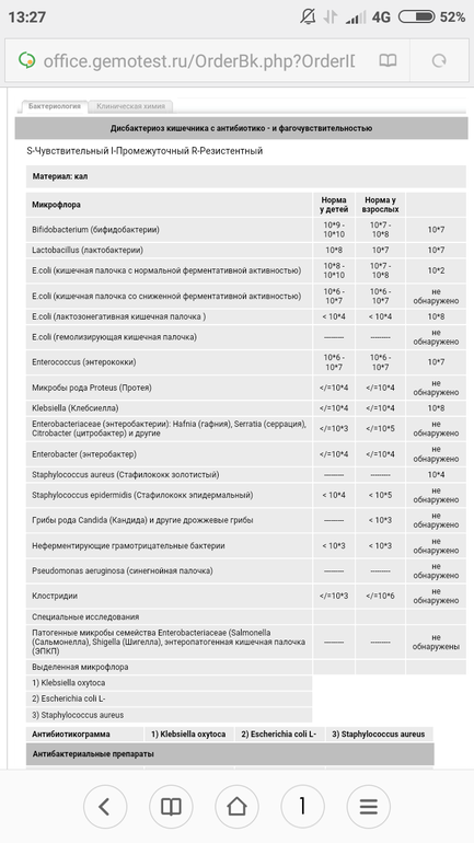 Стафолококк, недостаток бифидо и лактобактерий. Антибиотики не назначают. Назначают бактериофаги. Что на девятой строчке не могу прочесть, там превышеный уровень