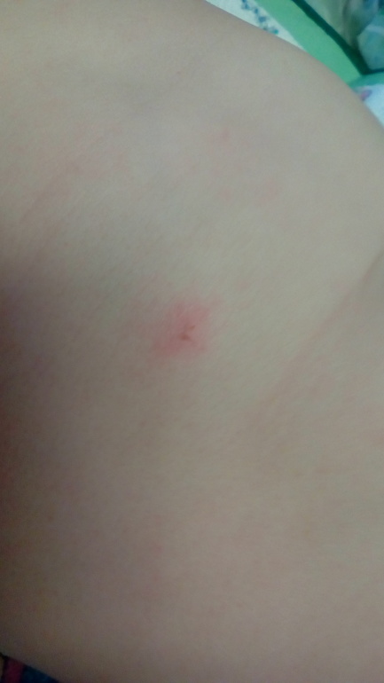 Пузырька нет, и укус на вряд-ли потому что у нас везде москитные сетки и он спит под пледом и в комбезе. Меня форма смущает, как будто 2 перевернутых треугольника