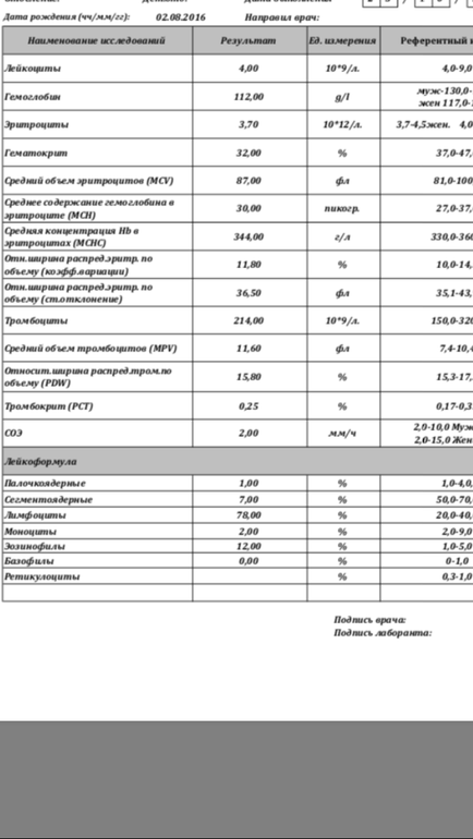 По лейкоформуле у вас нейтропения, всего 8% нейтрофилов, в пересчете чуть меньше 400 клеток, при норме от 1000. Запишитесь на консультацию к гематологу. У детей часто бывает хроническая доброкачественная нейтропения, но наблюдаться у гематолога нужно.