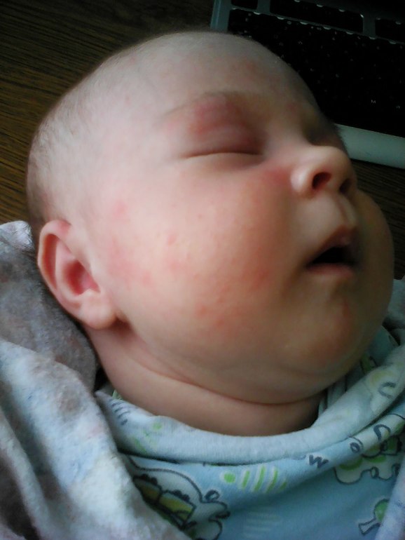 Аллергия краснеет когда ее умываешь или просто когда потревожишь - потрогаешь, ребенок когда руками задевает. Когда лежит на одном боку то краснеет 1 щека. Когда свечкой держишь после кормления и лицо соприкасается с одеждой, то аллергия тоже краснеет.