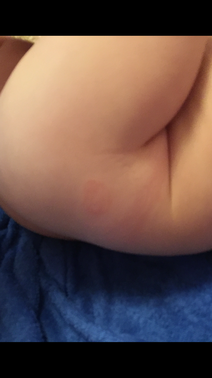 У нас такое же было и тоже на попе, врач говорила диатез , но черт побери нам был год с хвостиком и до этого ни какой аллергии ни на что не было, исключение продуктов не помогало. потом оно само как то прошло и вот через год опять в зиму выскочило такое же пятно на попе, как я теперь понимаю реакция на сухой воздух, помог увлажнитель воздуха и крем детский с лисичкой , больше и следа нет