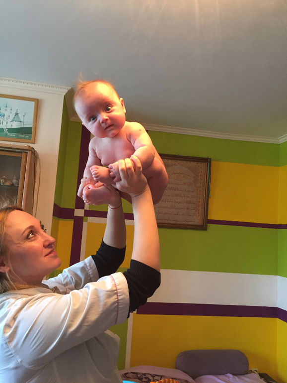 У нас двойня, 5 месяцев, дочка плохо держала головку, лежа на животе быстро уставала и утыкалась носом в диван, сын был с напряженными ногами, поджимал пальчик, так же оба не сильно хватались и лежа на спине, когда их поднимали за ручки, плохо подтягивали голову. Так у обоих мраморность. Так вот, по отзывам решили пригласить Анну с сайта ББ, и не прогадали. Она очень приятная девушка с опытом и образованием педиатра. В первый сеанс оценила подготовленность наших двойнят, показала как еще с ними самой надо и можно заниматься. У нас был массаж, гимнастика, занятия на мячике, еще она купает детей, но у нас душевая кабинка, поэтому мы остались без водных процедур.