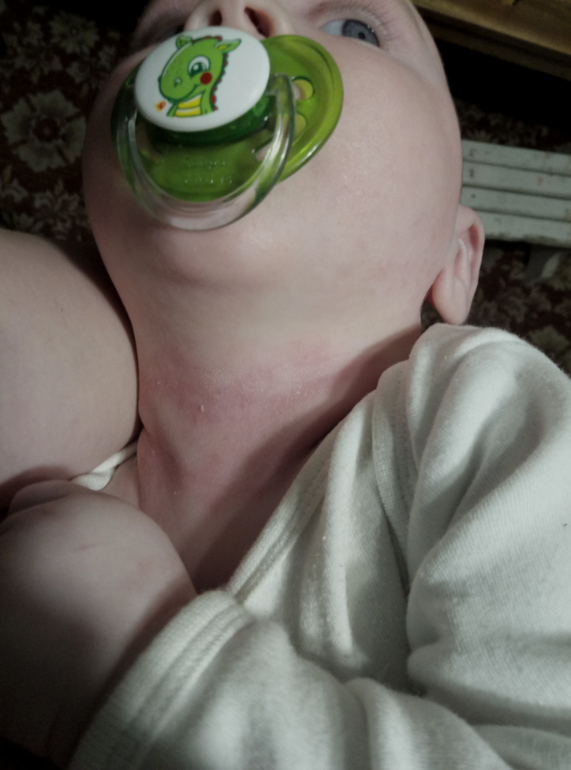 У нас шейка сзади краснючая была-жуть! Ниче не брало, недели две точно, от некоторых кремов не так ярко было,а потом поняла - эффект пудры от талька в составе. В общем, заказала БаумАп, 3 дня и все чисто. Еще мы с месяца моемся их гелем,хотя у нас нет АД. Он и восстанавливает и зуд снимает.