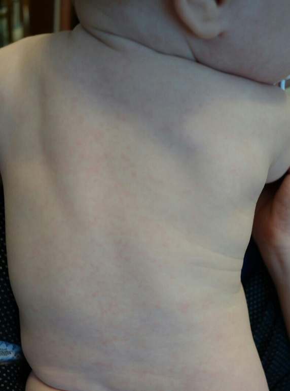 Высокая температураРебёнку 7 мес. Поднялась температура 38.5-38.7 и так 3 дня,но сбивалась до 37-37.5 на 4 день температуры не было вернее 36.8-37 но в ночь на 5 й день опять 38.3 а на утро сыпь и температура 38.6. Она сбивается. Врач была в первый день красное горло но не ангина и ушла.
