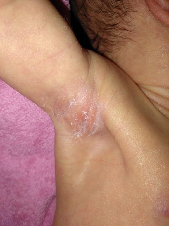 Было такое. Врач говорила хорошо промывать и хорошо просушивать потом. Я подмышки мягкой тряпочкой мыла. Не помню за сколько прошло если честно, но в 2 месяца точно не было уже
