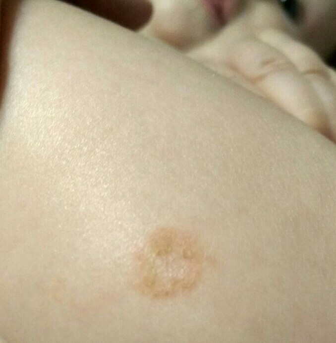 У дочки в 8 месяцев появилось аналогичное пятно, когда летом отдыхали с ней на даче. У нас был контакт с животными (в доме кот и собака), поэтому я была в ужасе, увидев эти высыпания! У нее было одно большое бледно-розовое пятно с четкими контурами и рядом еще несколько меньшего размера. Экстренно вернулись в Москву, вызвали неотложку, врач подтвердила мои опасения, заподозрив лишай и выдала направление на соскоб в кожно-венерологический диспансер! Может я перестраховщица, но в подобного рода заведения возить ребенка жутко боюсь! Приедешь с одним, уедешь с другим. Нашла очень хорошего дерматолога в частной клинике, не хочу сбрасывать ссылку - сочтут за спам( Посмотрите площадку babydoc.ru, там по рейтингу и отзывам врачей и так все понятно. Она усомнилась в лишае, оперативно отправила на соскоб, меньше, чем через час получили результат - не лишай! В итоге предположила реакцию на укус насекомого, прописала зиртек и мазь циндол. И как итог - через 3 дня идеальная кожа, и больше подобного не повторялось.