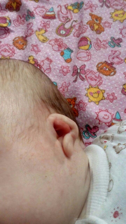 При рождении я её не видела, но её мама говорит, что тогда ушки были совсем прижаты вовнутрь. Ходят на плановые осмотры. Со слухом всё в норме. Отзывается на звуки, гулит, агукает.