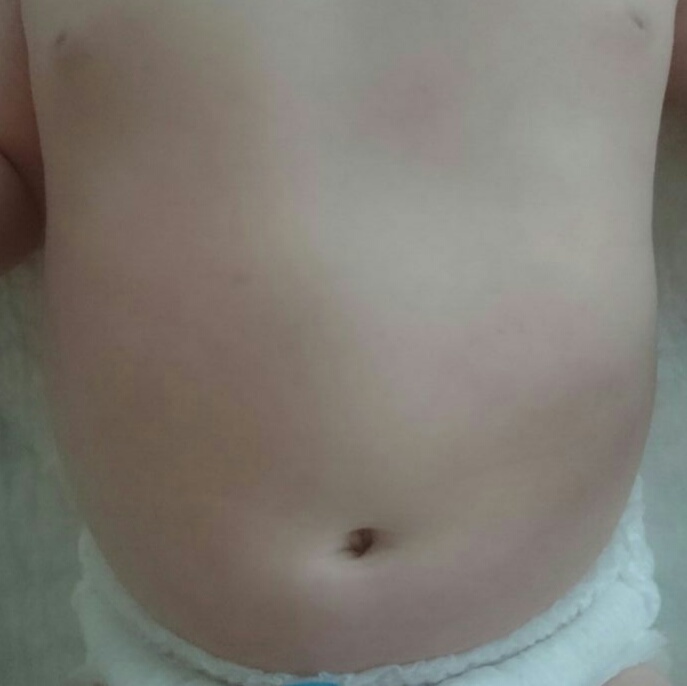 слева от пупка на верху,а потом вот такие пятна,вроде там в серединке типо прыщика было.Самый первый уже проходит.