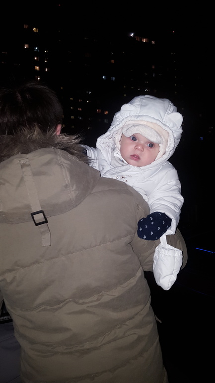 Медсестра намерила нас: вес 7,5 кг примерно, а рост 62 (на 2 см меньше, чем 2 недели назад, хаха, вот как так мерить..). Я ей говорю, мы в прошлый раз больше были. Она: а, ну да 64. Короче, точность - вежливость королей. А не медсестер))
