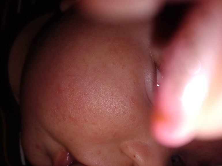 Высыпания на кожеВсем добрый вечер,нам 5месяцев,мы на гркдном вскармливании.Уже как месяц ребенка сыпит не знаю на что,остается только догадываться.Или может это вооьще не аллергия?(может потница,но на лбу?) Личико высыпано и кое-где на тельце. и на ощупь бугристая кожечка