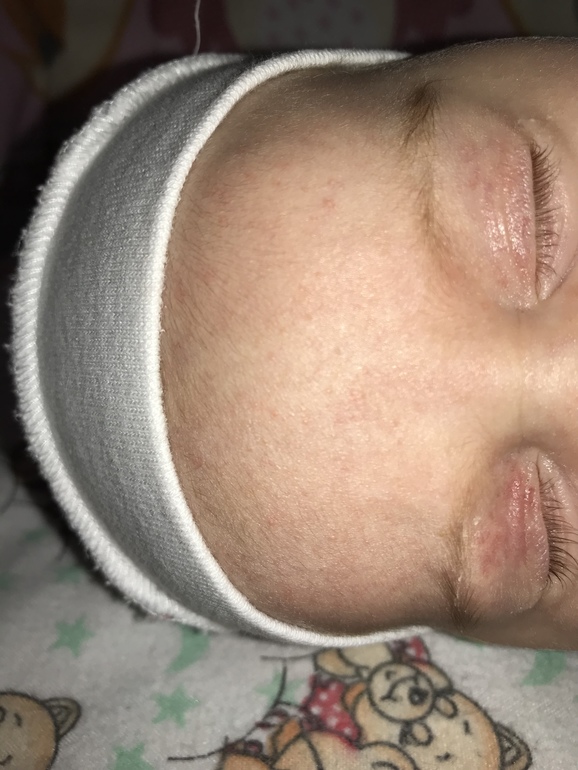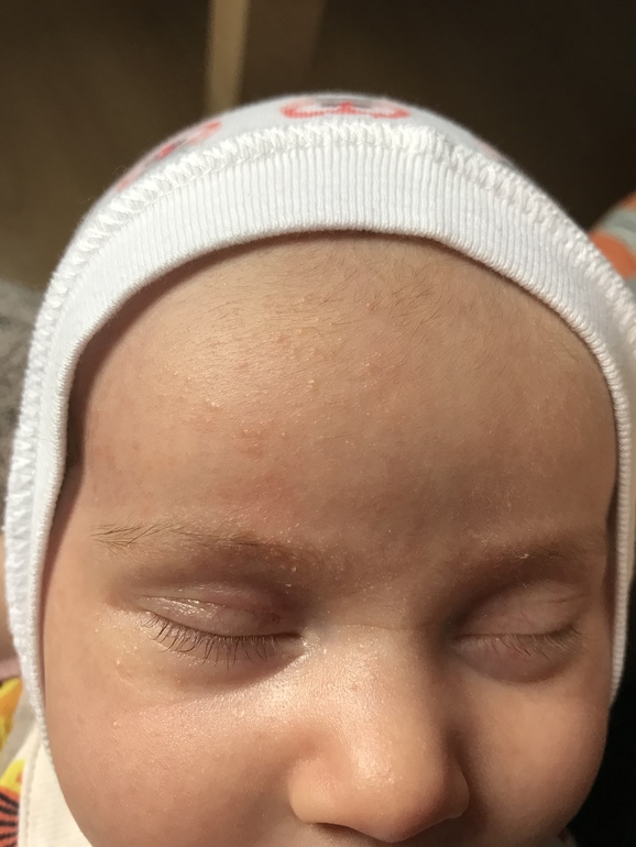Высыпания на кожеВот где-то с понедельника заметила на лобике у нас такие прыщики. Ещё есть немножко по линии виска.