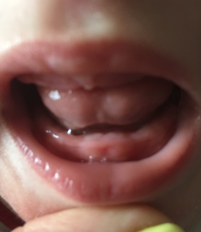Зубки и проблемы во время прорезыванияДано: ребенок 2ой день плохо ест, хотя она итак плохо ест, но тут уж поям хуже чем раньше. Хнычет сегодня даже когда играешь с ней, одна играет меньше обычного. Ночь спала как обычно вроде. Грудь чаще не требует. Вот фото, но очень сложно сфооткать, она как будто чещет десна язычком.