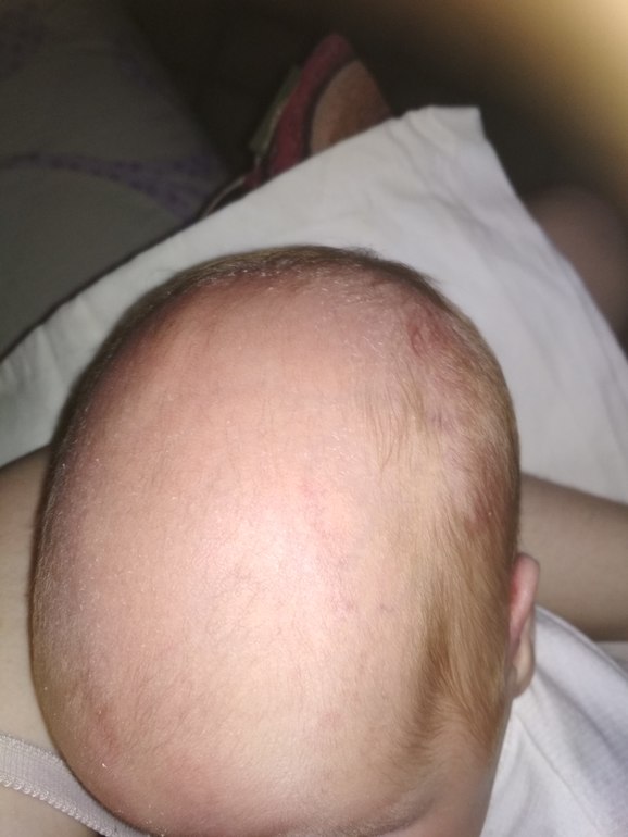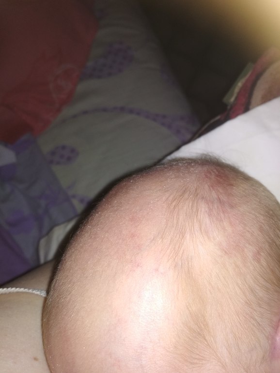 Нам вот вот будет месяц. Не могу точно сказать, когда это началось, заметила у малышки на голове шелушение. Там у нее пушок. А на остальной части головы с кожей всё хорошо, и волосики стали темнее. И было ли тоже самое, когда на голове был чисто пушок, не могу(( просто в какой-то момент, вчера, обратила внимание, что волос на затылке, макушке и весках длинненькие и темные. А от лба до макушки вот такая вот "залысина". воткая я...мама...