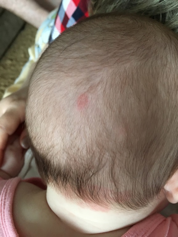 Меня бы больше не пятнышко на затылке беспокоило, а ярко-красная полоска на шее.