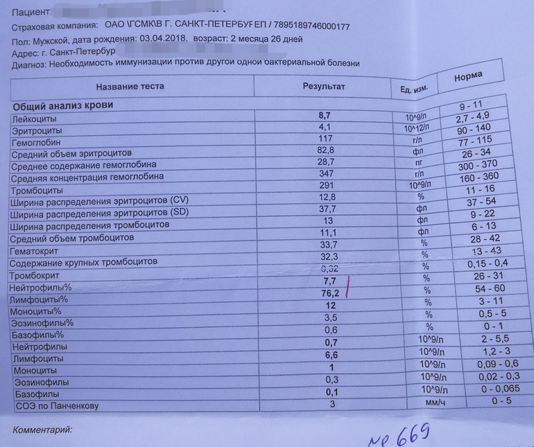 Мы прививку делали в 2, а кровь в 3 сдали. Нам нейтропению поставили.
