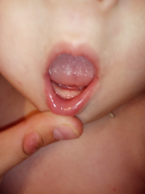 Ну вон же два нижних белеются! 🙂 Правда это не значит, что они завтра вылезут. У дочки тоже резец торчал в положении "почти прорезался" примерно с вашего возраста. А вылез первым по факту совсем другой, и в 7 месяцев.