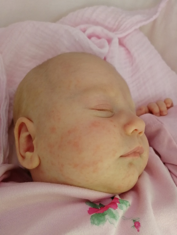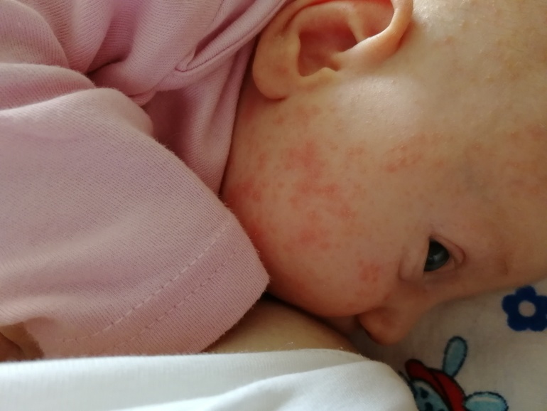 Высыпания на кожеНам завтра месяц, неделю как обсыпало у дочки щёчки, на волосистой части головы и сзади весь затылок. Вроде бы на вид прыщики с головками, но уж больно мелкие и частые, некоторые образуют целые пятна. Неделю назад была педиатр, сказала акне, но и неделю назад такого ужаса небыло. Следующий приём на будущей неделе только. Вот думаю стоит ждать или раньше к врачу идти, боюсь время упустить, если это аллергия всетаки...