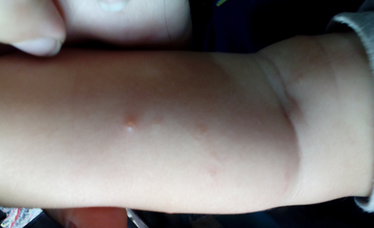 Мне кажется это комары. У нас месяц проходило. Циндолом мазала, чтоб не чесал.