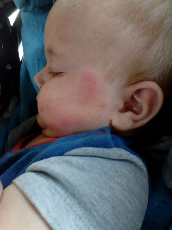 АллергияДоброго утра,мамочки)У нас неделю назад появились пятнышки,на ощупь твердые,думала сначала,что это просто укусы,но они никак не проходят.Нового вроде ничего не вводила,в некоторых пятнашках заметна водичка.Возраст 7 мес,прививок нет,прорезался зуб несколько дней назад.Фото вставила с трудом