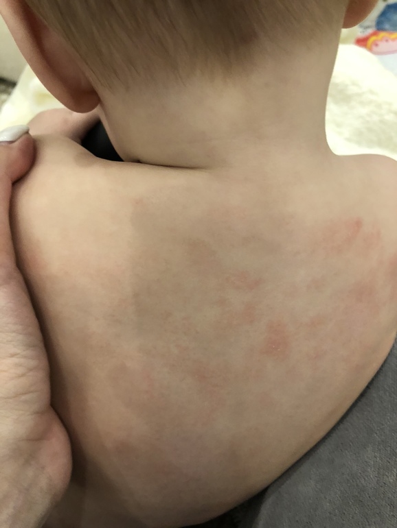 У нас прямо также. Все те же места и такие же пятна. Врачи тоже ставят только аллергию. На что не знаем. Нового нет ничего ни у ребенка ни у меня (ГВ у нас). Тоже мажу кремом для атопиков, чуть лучше, но не проходит((