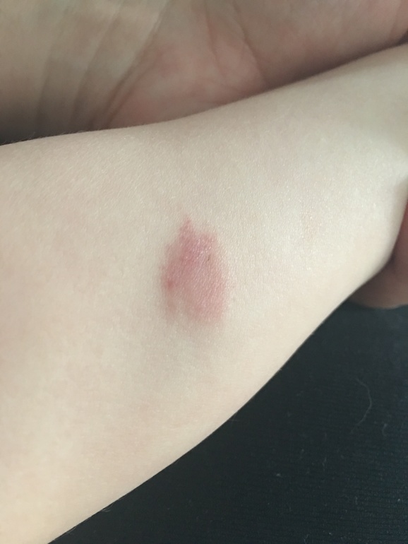 после того как поставили может пару дней прошло. Но у нас было видно что синяк и что тыкали 2 раза иглой. В вашем случае тоже очень похоже на синяк, попробуйте местными помазать , можно еще против аллергии подавать. Еще может быть от соприкосновения с одеждой, натерло или раздражение, у меня так было 1 раз в школе