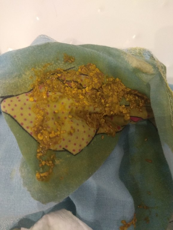 Стул новорожденногоДевочки, нам 2 недели, какает часто. Задумалась в норме ли у ребенка каки, цвет жёлтый, но крупинки. Это в норме? (Фото под катом, брезгливым не смотреть :)) И сколько максимально ребенок в норме может какать?