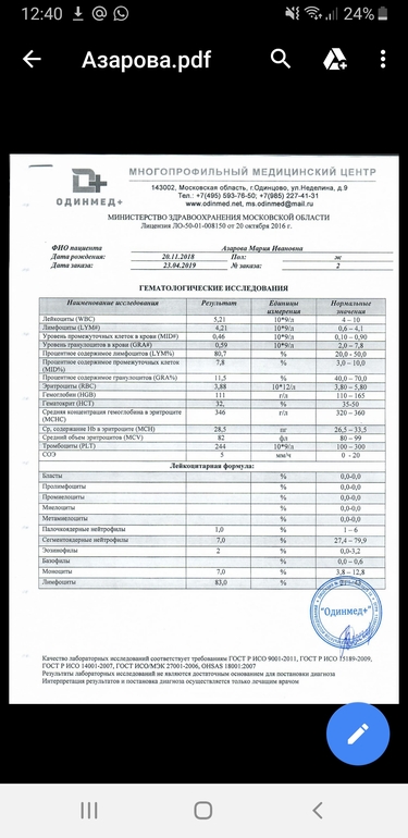 АнализыДобрый день! Подскажите, пожалуйста, такие показатели лимфоцитов и нейтрофилов могут свидетельствовать о каком-либо серьезном заболевании или это, допустим, возрастное (ребенку 5 месяцев) или аллергическая реакция?