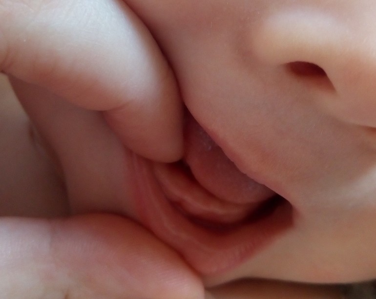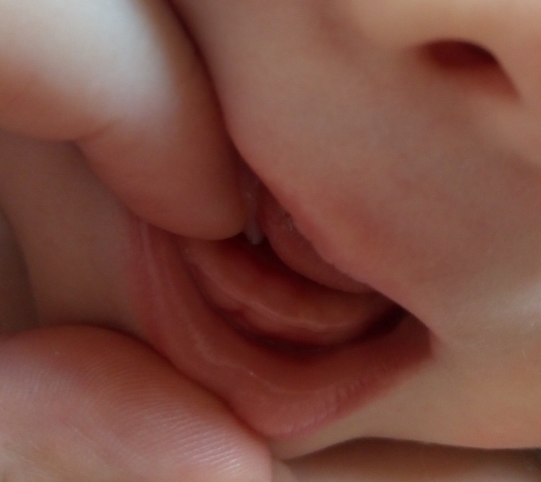 я ложечкой проверяла, а то ребенок в рот не пускала посмотреть