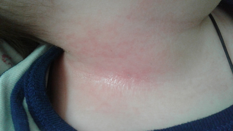 АллергияДевочки, к врачу попадем, но только на след.неделе. Гляньте, пожалуйста, может у кого похожее было. Ребенку 11 мес. Началось все как раздражение от слюней (зубки), но уж так трудно вывести его. Думаю, не аллергия ли. Порошок не меняли, ничего нового не ели... Началось под подбородком, продолжилось по бокам на шее. Это фото как раз сбоку. Интересует аллергическое ли