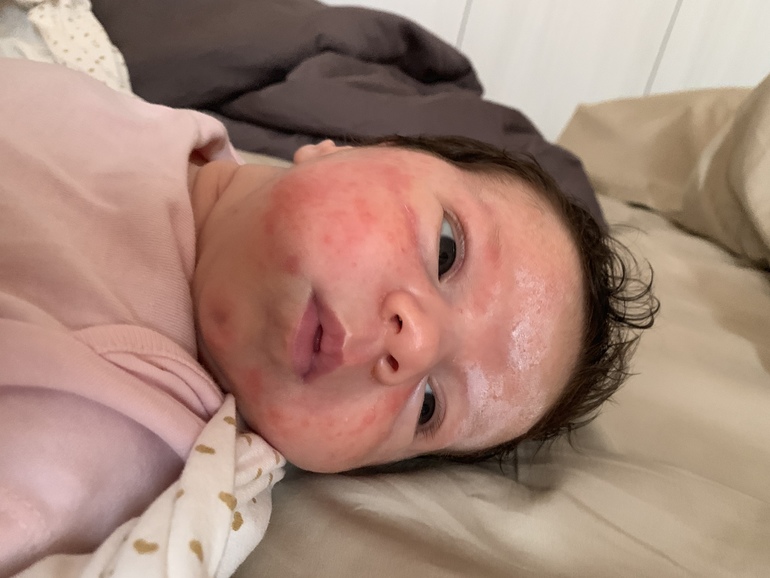 АллергияДобрый день! Подскажите на что это больше похоже? Дерматолог сказал акне новорождённых, педиатр один-пищевая аллергия от моей погрешности в диете ( на ГВ исключить молочные продукты) и потница. Второй педиатр сказала это стафилококк в ЖКТ..самое главное, что из рекомендаций циндол, который без эффекта и далее дерматолог рекомендовал Скинкап. Второй педиатр отваром лаврового листа просто рекомендовал протирать.. высыпания уже 2 недели, началось с незначительных пустул на лице и далее появились сливные элементы и помимо лица на груди, спинке и ручках. Вообщем очень надеюсь на помощь😪
