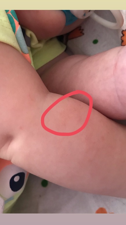 Высыпания на кожеСегодня заметила у малыша пятнышко на руке , его