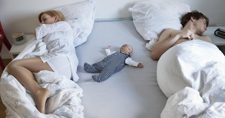 2. Ребенок спит отдельно, или со стороны матери, или отец спит отдельно. Между родителями не укладывать.
