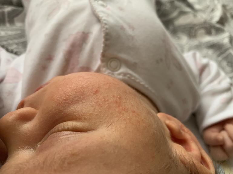 Специально посмотрела: последняя прыщавая фотография у меня 12 декабря, а родилась она 24 октября. Получается почти 2 месяца у нас было.